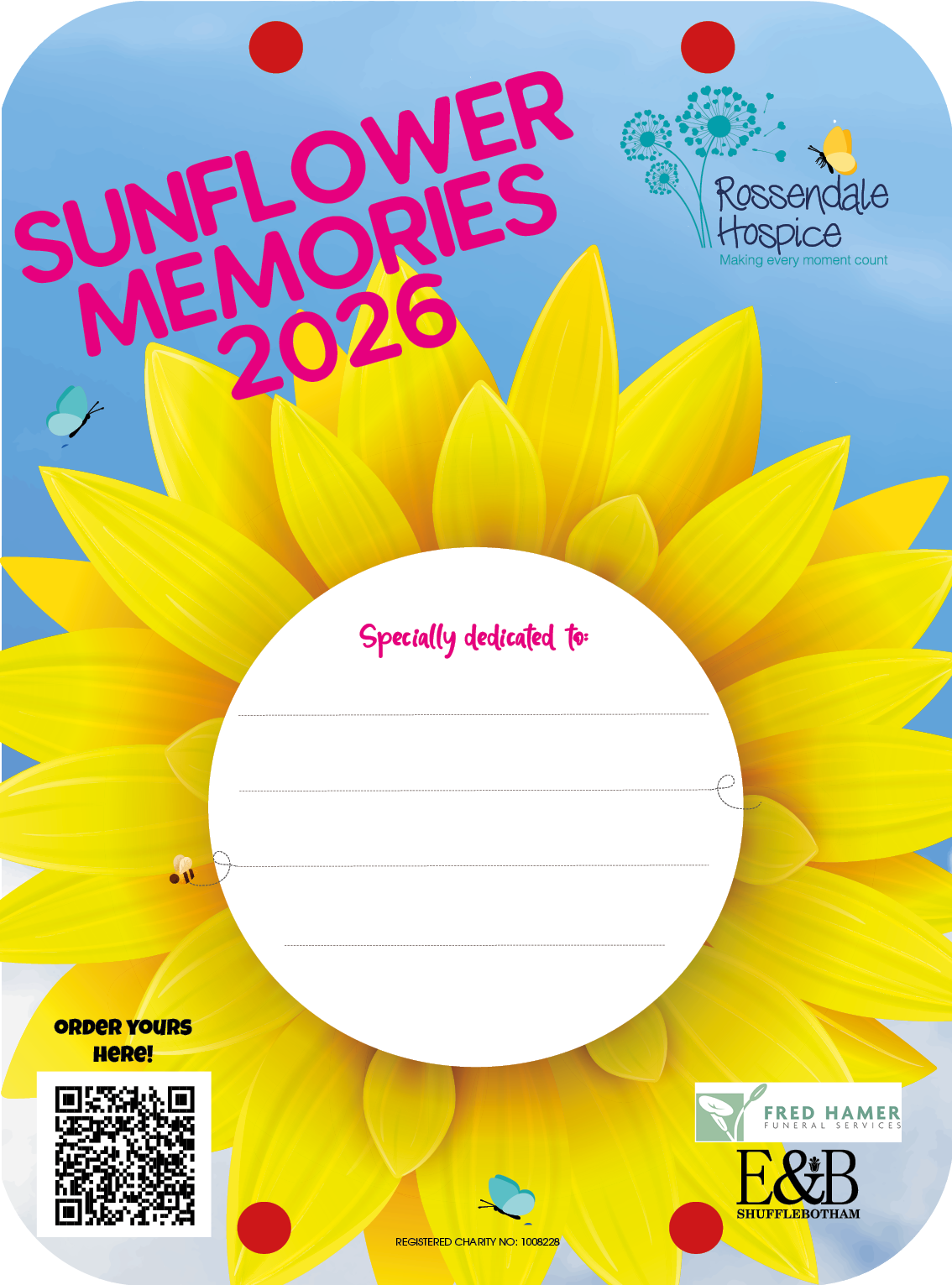 Remember your loved ones with a Sunflower dedication this summer. Starting from 2nd June, hundreds of sunflowers will line the streets of Rossendale, each standing tall as a tribute to those who have been remembered. Sunflowers stay up until the end of July.